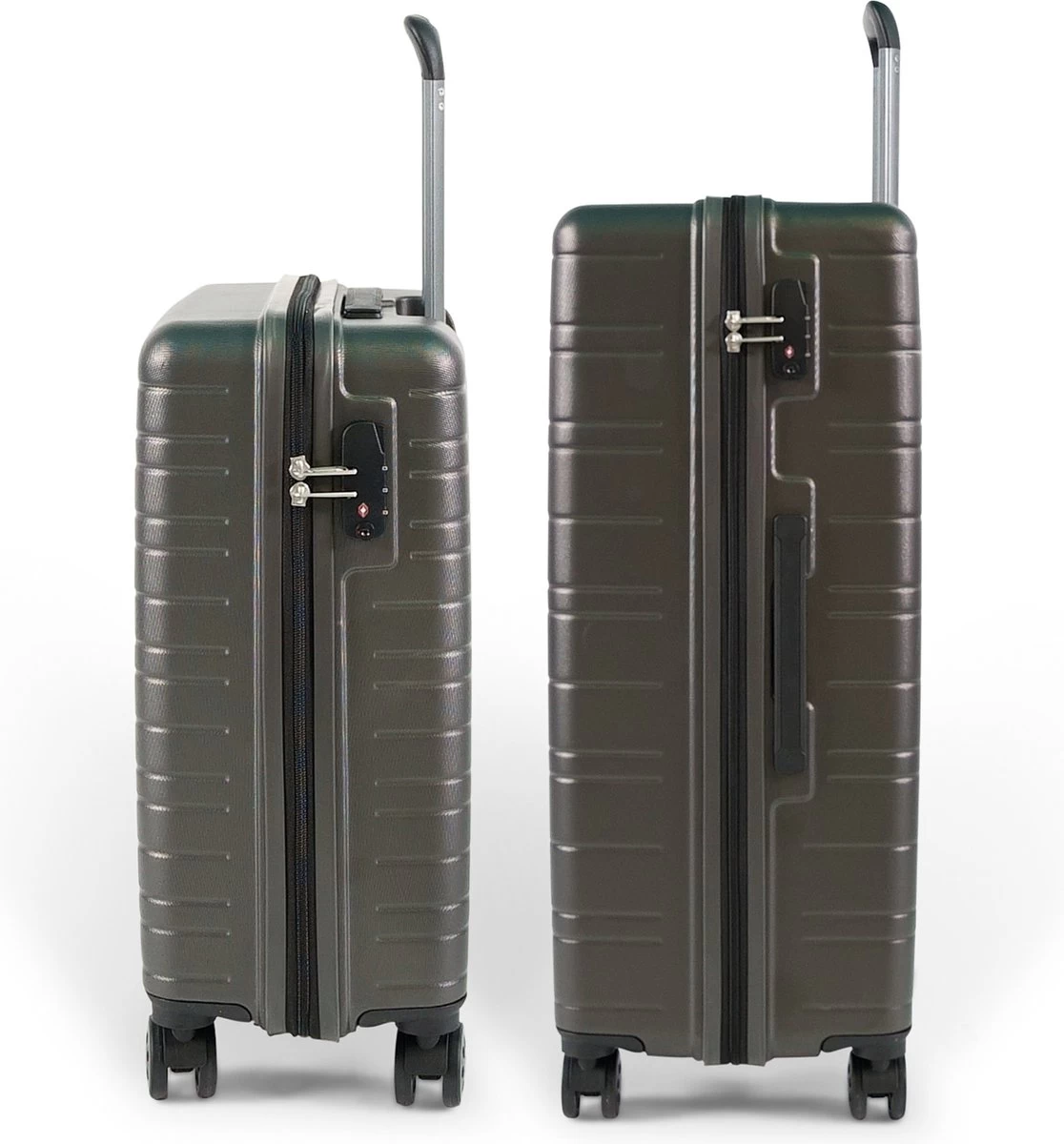 Ontsnappen aan het dagelijks leven met de Amsterdam NO.9. De Amsterdam lijn wordt gesierd door eenvoud. Reiskoffers met een modern strakke uitstraling met minimalistische klasse. Cloudy Grey die klasse een eigentijdse en klassieke uitstraling geeft. Tel hier hier de inhoud bij op en je hebt echte winnaars. De duo kofferset zorgt er namelijk voor dat je het beste van twee werelden hebt: handbagage voor al je essentials en een grote koffer zodat je genoeg mee kunt nemen. Daarnaast zijn de koffers lichtgewicht, dus reizen blijft easy breezy. De gestroomlijnde wieltjes dragen daar zeker aan bij. De vierdubbele 360 graden spinners zorgen er namelijk voor dat jouw koffers op rolletjes lopen. Letterlijk. Nog nooit ging het lopen met een koffer zo soepel. Maak het jezelf helemaal comfortabel door de pushbar in te stellen op de juiste hoogte. Je zou er bijna een extra rondje mee lopen zo soepel gaat het, maar hey you’ve got a flight to catch!