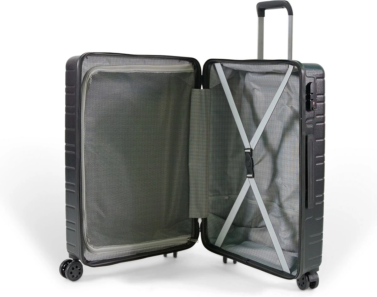 Het design van TROLLEYZ koffers is luxe met een moderne twist. Naast de verstelbare pushbar, krasbestendige buitenkant en 360 graden spinner wheels, mag de binnenkant er ook zijn. De binnenkant van de koffers heeft namelijk een compartiment met inpakriemen om jouw spullen bij elkaar te houden en een met rits afsluitbaar compartiment. Zo weet je zeker dat jouw spullen nergens heengaan tijdens de reis.