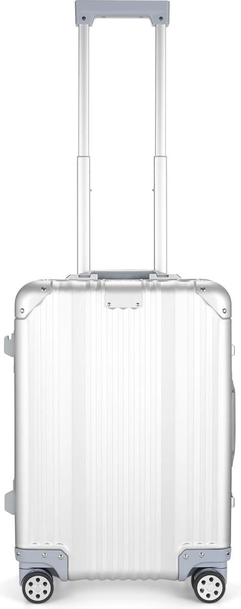 De Mozzel Darrow – Aluminium reiskoffer – World Traveler – Handbagage koffer met 4 wielen – 35 Liter – 20 inch – Harde koffer – Zilver – heeft een modern ontwerp en is gemaakt van lichtgewicht aluminium waardoor hij sterk maar toch licht is. De harde koffer zorgt voor een goede bescherming tijdens je vakantie, zakenreis of weekendje weg. Ze zijn ontworpen met het oog op een lange levensduur en zijn voorzien van 2 TSA sloten zodat reizigers zich tijdens hun reis geen zorgen hoeven te maken dat er iets met hun bezittingen gebeurt. En met behulp van de 360 graden roteerbare antislip wielen manoeuvreert u zich gemakkelijk door het vliegveld.