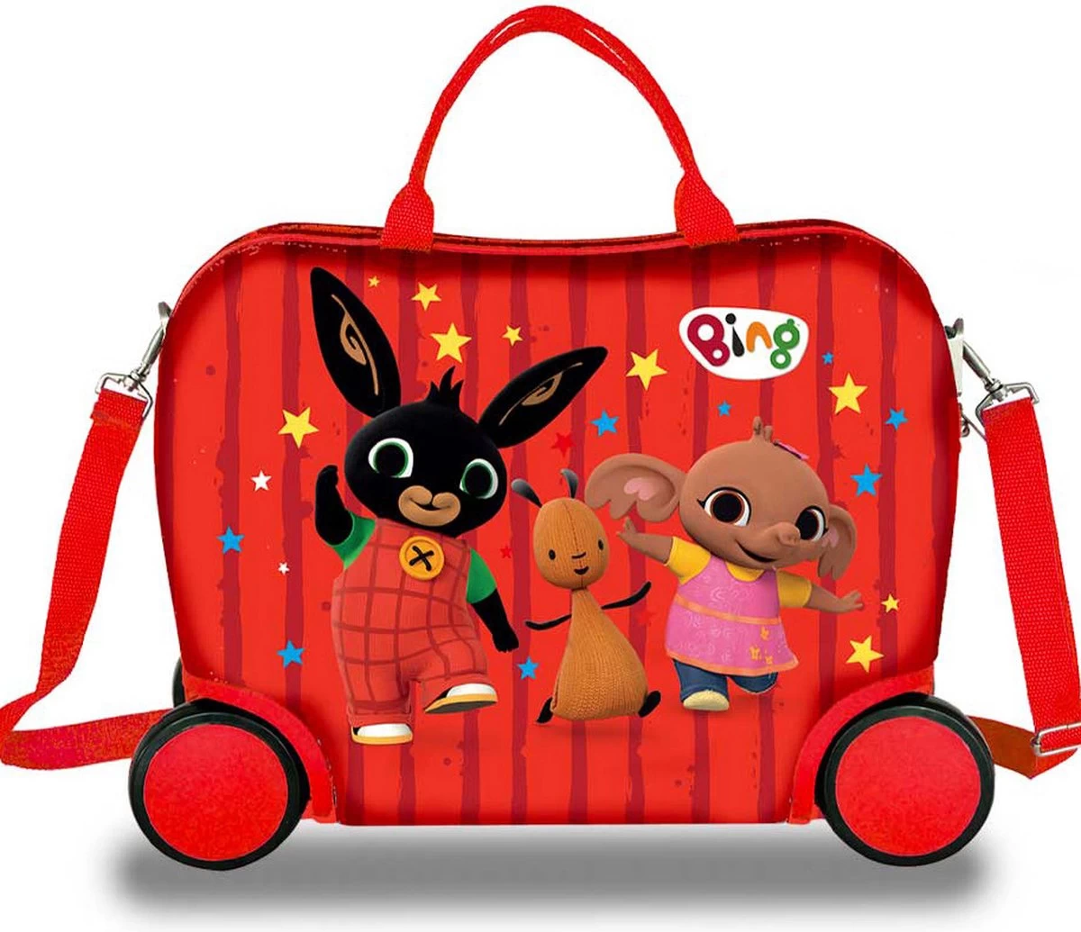 Deze Ride-On koffer maakt reizen met kinderen heel wat relaxter. Deze Bing reiskoffer heeft niet alleen een heel mooi design, het is ook de enige koffer waarmee kinderen kunnen rondtoeren of op voortgetrokken kunnen worden wanneer de vermoeidheid toeslaat. Geen pijnlijke voetjes meer, een kind kan er op zitten tijdens het wachten en een beetje rondrijden als de verveling toeslaat. De koffer is gemaakt van stevig kunststof en biedt voldoende ruimte voor alle bagage. De koffer is te sluiten met een stevige rits en een slot, het slot houdt de ritsen bij elkaar zodat niemand jouw koffer kan openen. Deze reiskoffer is ideaal voor elke vakantie, maar vooral voor elke Bing fan!
