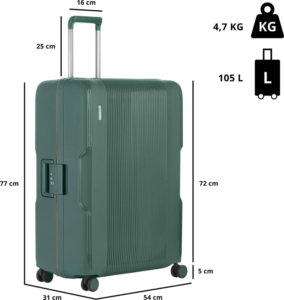 Een zorgvuldig samengestelde mix van hoogwaardige materialen. De naam zegt het al; De “Protector” kan tegen een serieus stootje door ultralicht polypropyleen materiaal. Voor een koffer met vaste kliksloten een echte lichtgewicht. Niet onbelangrijk voor je lange (wereld)-reis of stedentrip. Ritsen vormen een zwak beveiligingspunt op een koffer, dus als veiligheid een topprioriteit is voor u, dan ligt de keuze voor deze koffer voor de hand. Het geïntegreerde TSA-cijfercombinatieslot met twee vergrendelbare kliksloten reduceren de kans op inbraak tot een minimum.