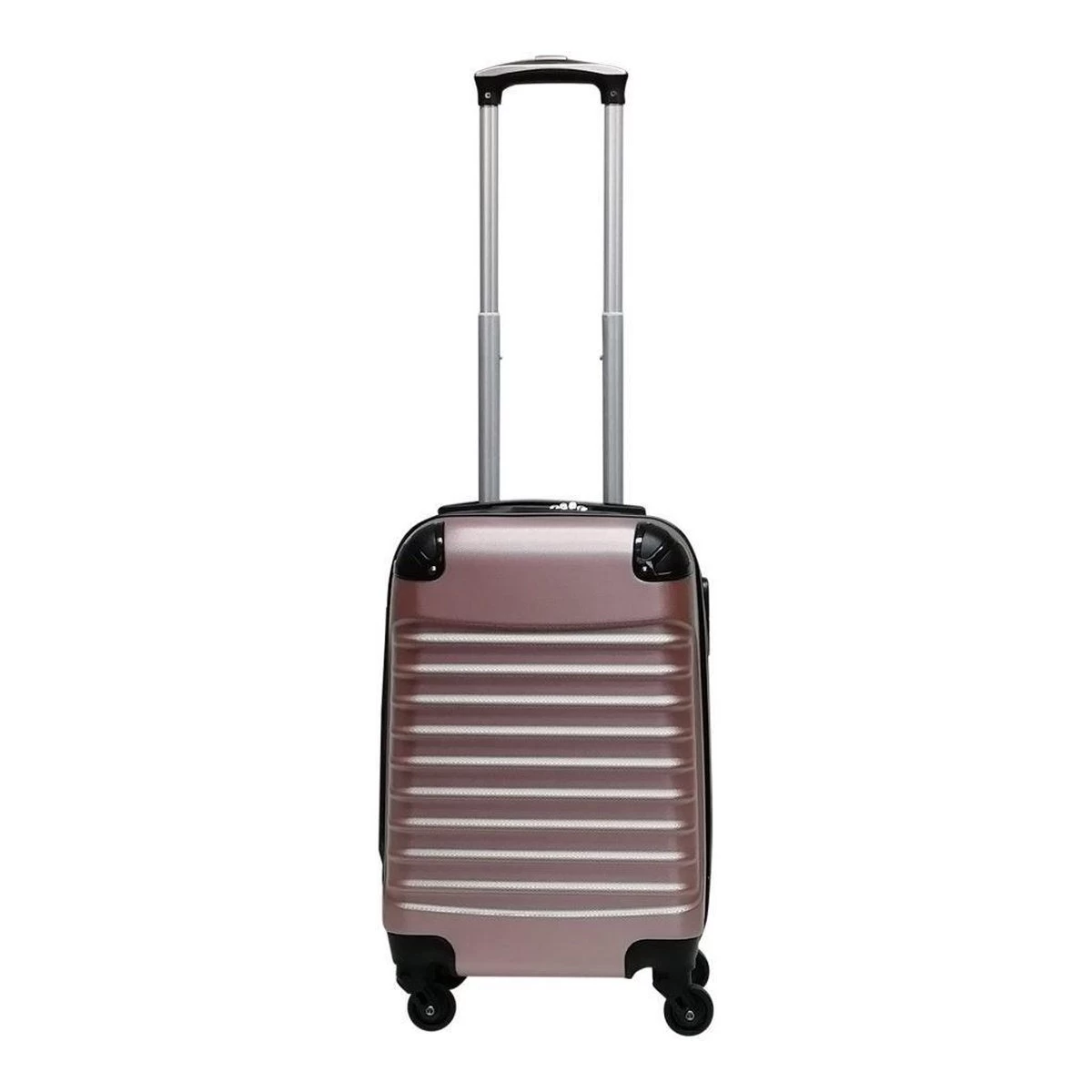 Mooie 2-delige hardschalen kofferset bestaande uit een koffer maat L en een koffer maat XS. Koffers zijn binnenin gevoerd, voorzien van spanbanden en een tussenschot met rits. Comfortabel door 4-wiel systeem. Beide koffers zijn voorzien van een vast cijferslot op de zijkant van de koffer.