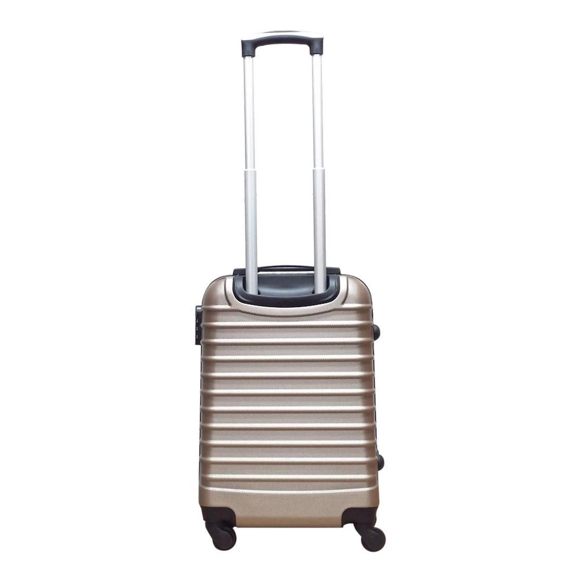 Castillo ABS hardschalen handbagage koffer in kleur champagne. Koffer is voorzien van een ritssluiting rondom. Binnenin gevoerd en voorzien van tussenschot met ritssluiting en spanbanden. Koffer is op slot te zetten dmv vast cijferslot op de zijkant van de koffer.