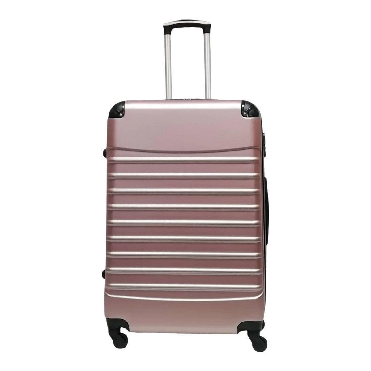 Grote ABS hardschalen koffer in kleur rosé gold. Koffer is voorzien van een ritssluiting rondom. Binnenin gevoerd en voorzien van tussenschot met ritssluiting en spanbanden. Koffer is op slot te zetten middels een vast cijferslot op de zijkant van de koffer. Handvat op bovenkant en zijkant en voorzien van een comfortabel 4-wiel systeem.