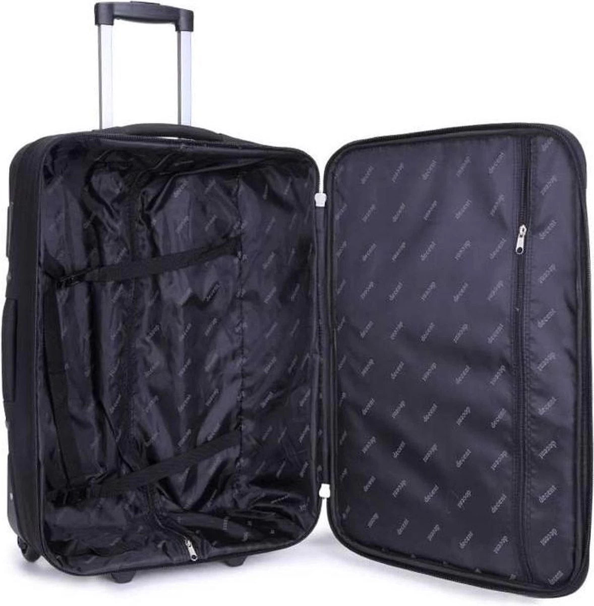 Grote koffer uit de Basic-Line serie van Decent. De koffer is voorzien van een rits rondom die op slot te zetten is middels een sleutelslotje. In de koffer zitten pakriemen en in de deksel zit een groot ritsvak dat handig is voor kleine essentials. Op de voorzijde van de koffer zitten twee ritsvakken. Op de bovenkant en zijkant van de koffer zit een handvat. De uitschuifbare stang en de 2 stevige wielen geven optimaal reiscomfort.