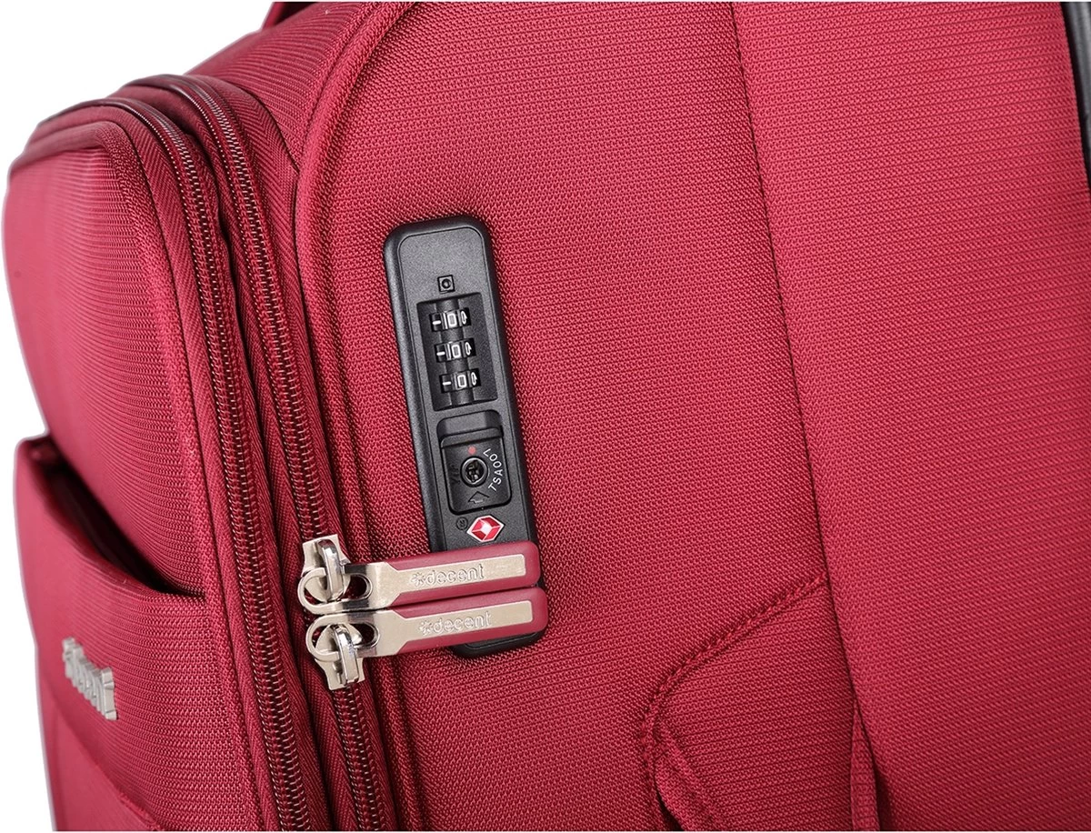 Grote, lichtgewicht stoffen koffer uit de D-Upright serie van Decent. De D-Upright serie kenmerkt zich door het lage gewicht. Deze koffer weegt slechts 3.1 kilo en is daarmee één van de lichtste koffers op de markt. Koffer is voorzien van een rits rondom die op slot te zetten is middels een vast TSA slot op de zijkant van de koffer. Binnenin gevoerd, voorzien van spanbanden en een ritsvak in de binnenkant van de klep. Op de voorzijde zit een groot, diep ritsvak en aan de boven- en zijkant zit een handvat. De uitschuifbare trekstang en de 4 zwenkwielen zorgen voor optimaal reiscomfort.