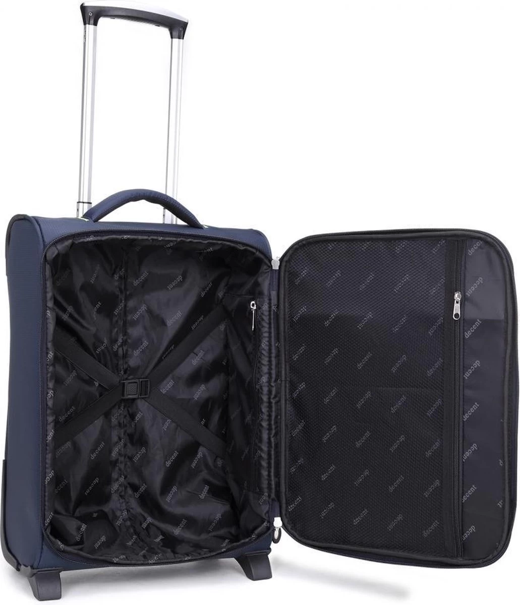Hoe leuk is deze handbagagekoffer van Decent? Perfect voor bijvoorbeeld een weekendje weg. De koffer uit de Super-Light collectie sluit met een ritssluiting en heeft een ruime binnenkant. Aan de binnenkant zitten handige inpakriemen voor het netjes inpakken en nog een ritsvak in de flap, perfect voor de wat kleinere essentials. Op de voorkant van de koffer zit ook nog een groot ritsvak. De koffer is gemaakt van super licht materiaal en door de uitschuifbare trekstang en de twee wielen rol je hem overal gemakkelijk mee naartoe!