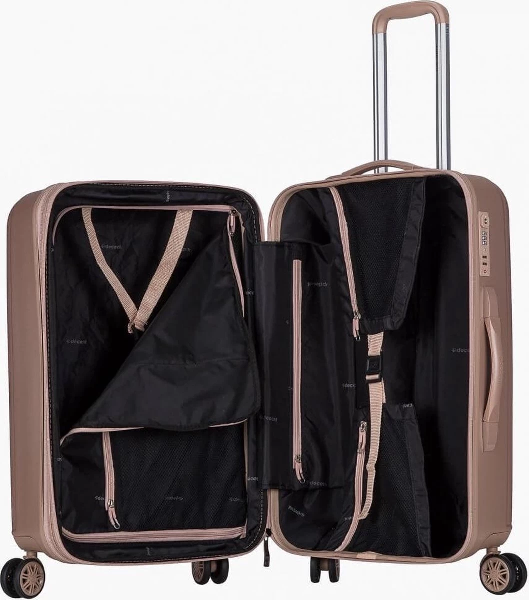 Kleine hardschalen ABS handbagage koffer. Koffer is voorzien van een rits rondom die op slot te zetten is middels een vast TSA cijferslot op de zijkant van de koffer. Binnenin gevoerd en voorzien van meerdere insteek- en ritsvakken voor het overzichtelijk opbergen van uw bagage.