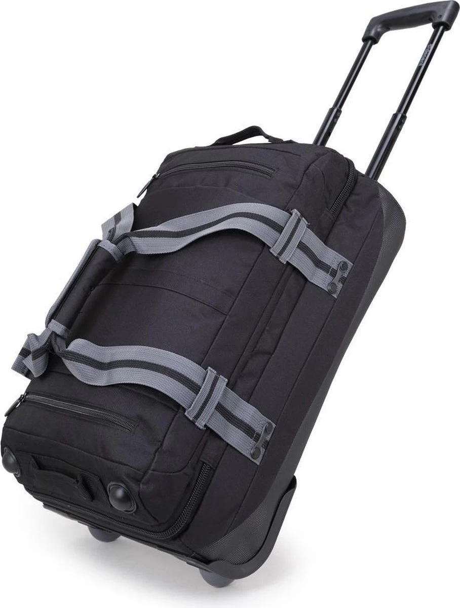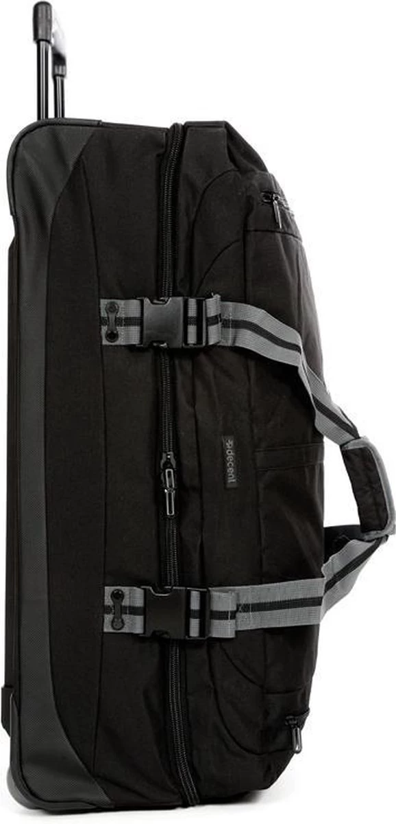 Grote wieltas uit de Sport-Line serie van Decent. De reistas heeft twee soepele wieltjes, een verstelbare trekstang en twee handvatten waardoor de tas gemakkelijk overal mee naar toe te nemen is. Aan de binnenzijde van de tas bevinden zich twee gescheiden compartimenten die worden afgesloten met een rits. Binnenin zitten tevens veel ritsvakjes voor het overzichtelijk opbergen van kleine reisaccessoires. Op de voorzijde van de tas zitten twee ritsvakken. De spanbanden aan de zijkanten maken het mogelijk om bagage zo compact mogelijk te maken. Thuis is de reistas makkelijk plat te maken en op te bergen.