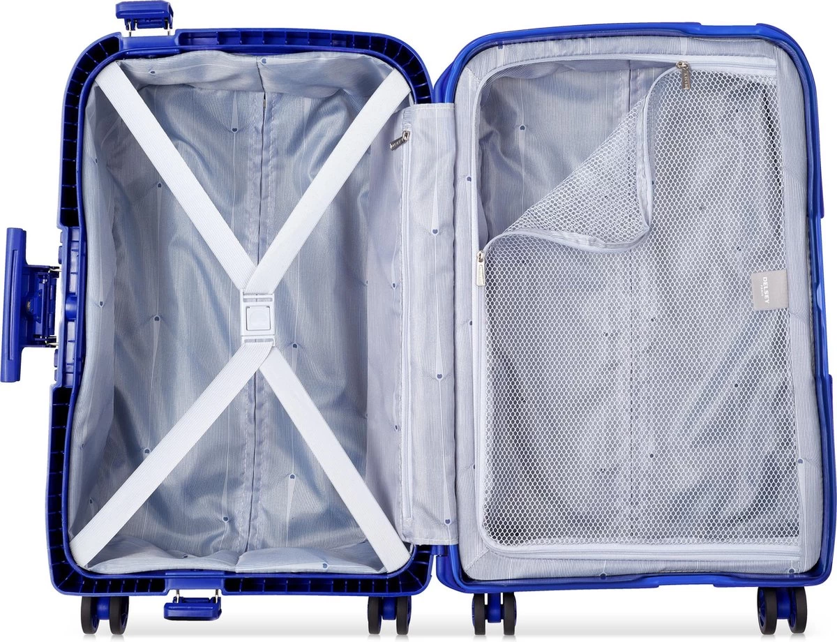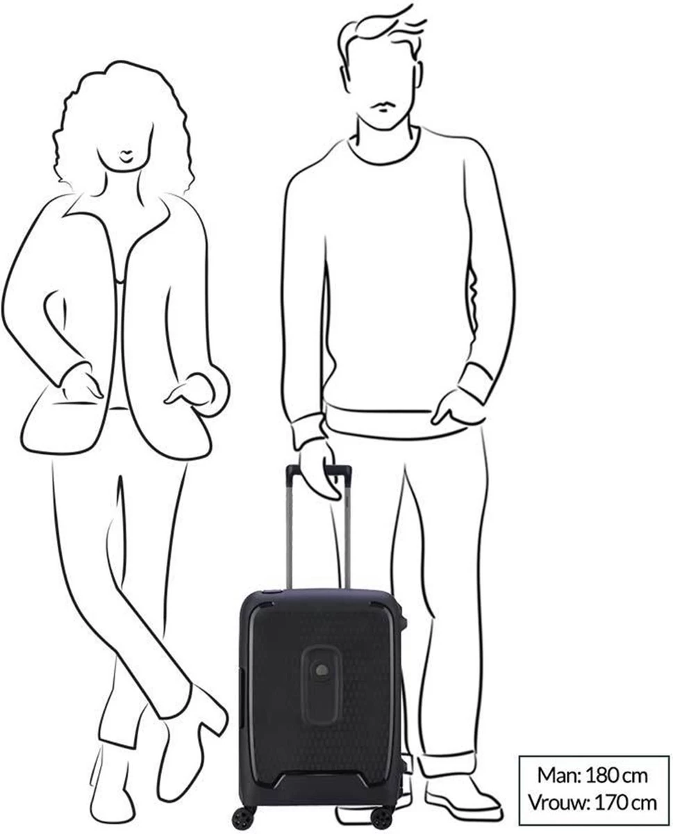 De serie Delsey Moncey is een serie gemaakt van het zeer schokbestendige materiaal polypropyleen. De koffer heeft een 3-puntssluiting met TSA cijferslot. Ook van binnen is deze koffer mooi uitgevoerd met elastische inpakbanden en een vak die met een rits is af te sluiten. Dankzij de vier soepele, stille en dubbele wielen, de twee handvatten en de telescopische trekstang kan de koffer comfortabel worden vervoerd. Met een inhoud van 38 liter is deze koffer ideaal voor een weekendtrip.