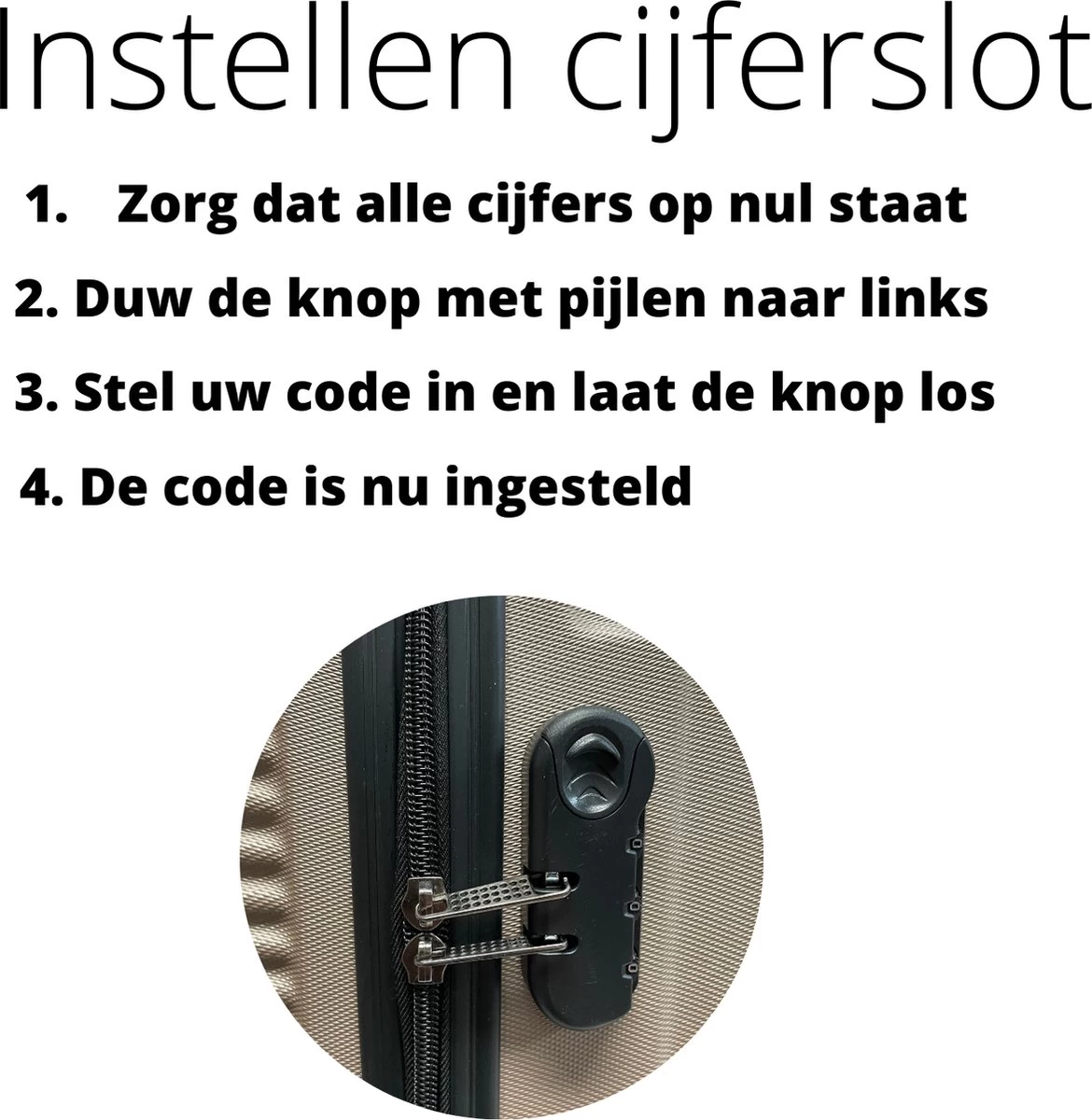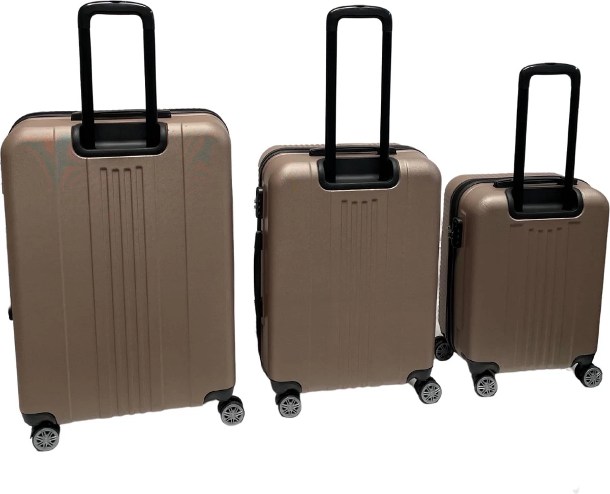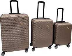 De set bevat drie koffers van verschillende grootte. De kleinste koffer heeft als afmetingen 50 x 30 x 25 centimeter. Deze trolley kun je meenemen als handbagage in het vliegtuig. Hij voldoet daarvoor aan de standaard maten. De medium koffer is 60 x 40 x 30 centimeter en de grootste meet maar liefst 70 x 50 x 35 centimeter.