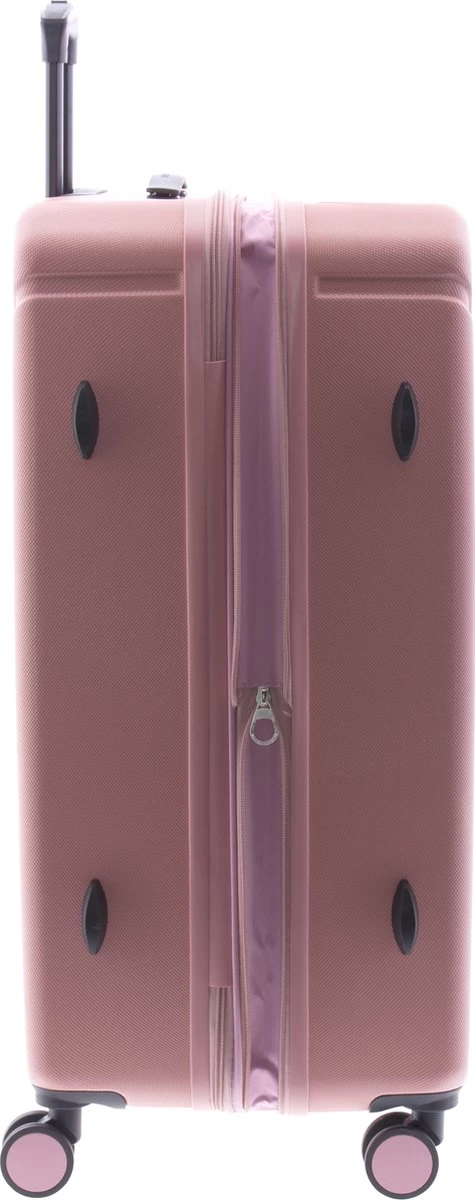 Mooie grote hardschalen ABS koffer met dubbele zwenkwielen. Koffer is voorzien van een ritssluiting rondom en een extra expandable rits waarmee de koffer qua volume te vergroten is van 105 naar 117 liter. Binnenin gevoerd en voorzien van tussenschot met ritssluiting, ritsvakje en spanbanden. Koffer is op slot te zetten middels een vast cijferslot op de zijkant van de koffer. Handvat op boven- en zijkant en voorzien van comfortabel 4-wiel systeem.