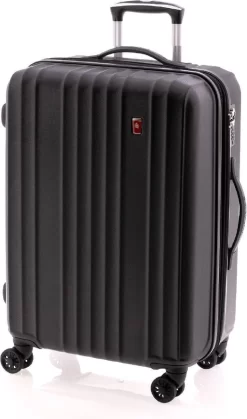 Grote hardschalen, ABS koffer uit de Zebra serie van Gladiator in kleur bordeaux rood. Koffer is voorzien van een ritssluiting rondom en extra expandable rits waarmee de koffer qua volume te vergroten is van 100 naar 114 liter. Binnenin gevoerd en voorzien van tussenschot met ritssluiting, ritsvakje en spanbanden. Koffer is op slot te zetten middels een vast cijferslot op de zijkant van de koffer. Handvat op boven- en zijkant en voorzien van comfortabel 4-wiel systeem.