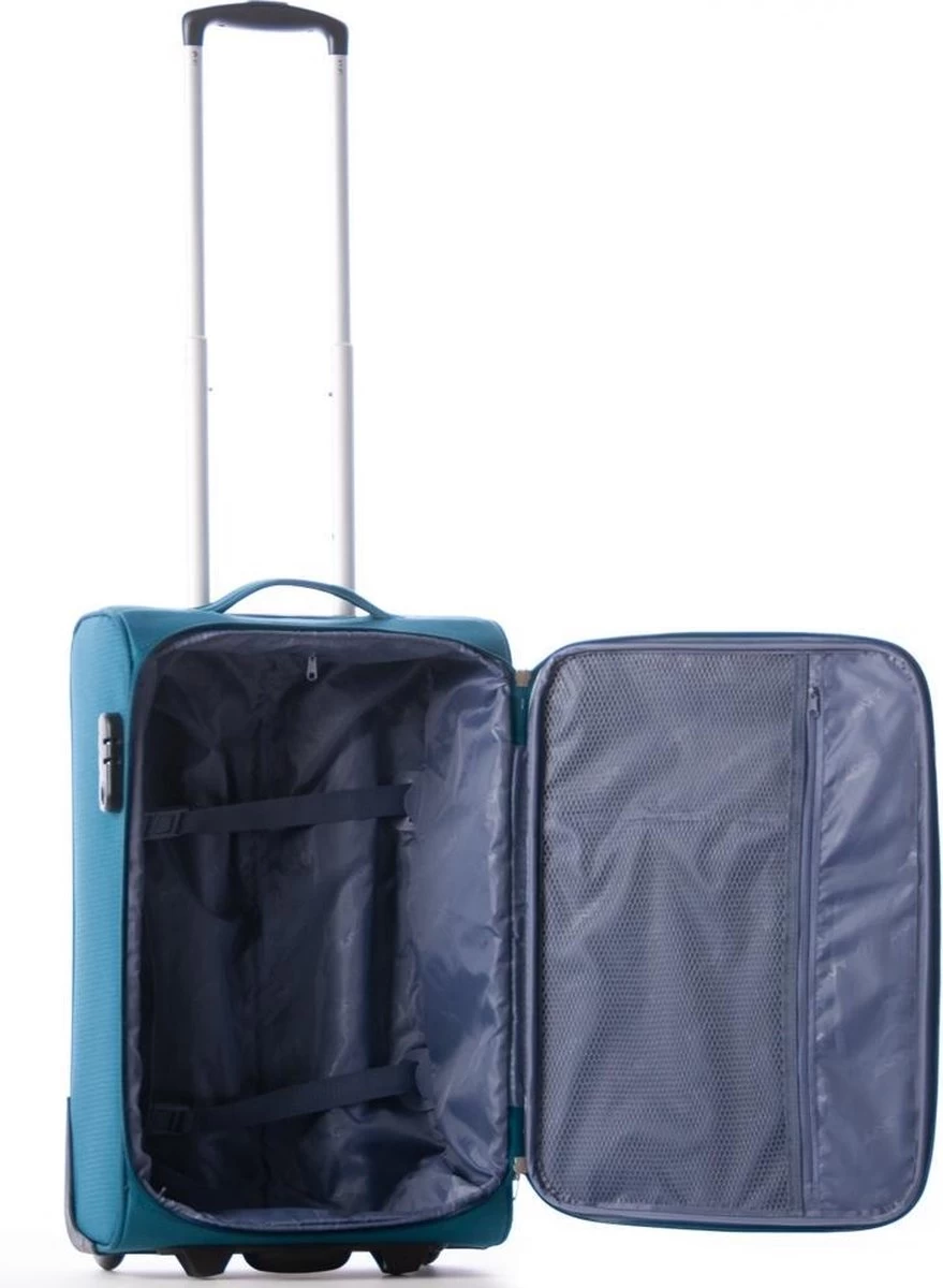 Handbagage cabin trolley uit de Brick serie van Line. De Line Brick serie voldoet aan de IATA norm en is geschikt als handbagage. De handbagage koffer heeft een ruim hoofdcompartiment met inpakriemen, een netvak met ritssluiting en sluit volledig middels een rits. Praktisch in gebruik met dubbele trekstang en 2 soepele wielen. Super licht gewicht.