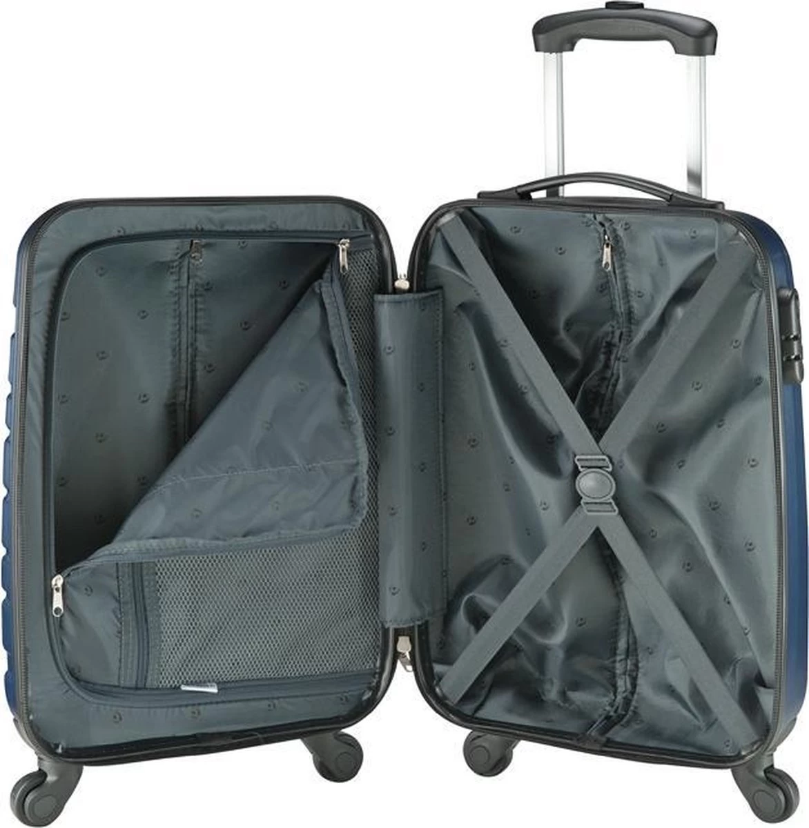 Met deze sportieve Singapore cabin size koffer reis je helemaal hip en happening de hele wereld over. Dankzij zijn compacte formaat van 55 cm bij 35 cm bij 20 cm en zijn inhoud van 34 liter, mag deze koffer probleemloos als handbagage mee. Neem deze cabin size trolley mee tijdens een weekje weg in het buitenland of voor een logeerpartij in eigen land. Door het aanwezige cijferslot zijn uw spullen te allen tijde veilig. Let op: het betreft hier geen TSA-slot (Transport Security Administration), dus als u van plan bent om er mee naar de VS te reizen, dan adviseren we u graag een andere koffer met een USA friendly slot.