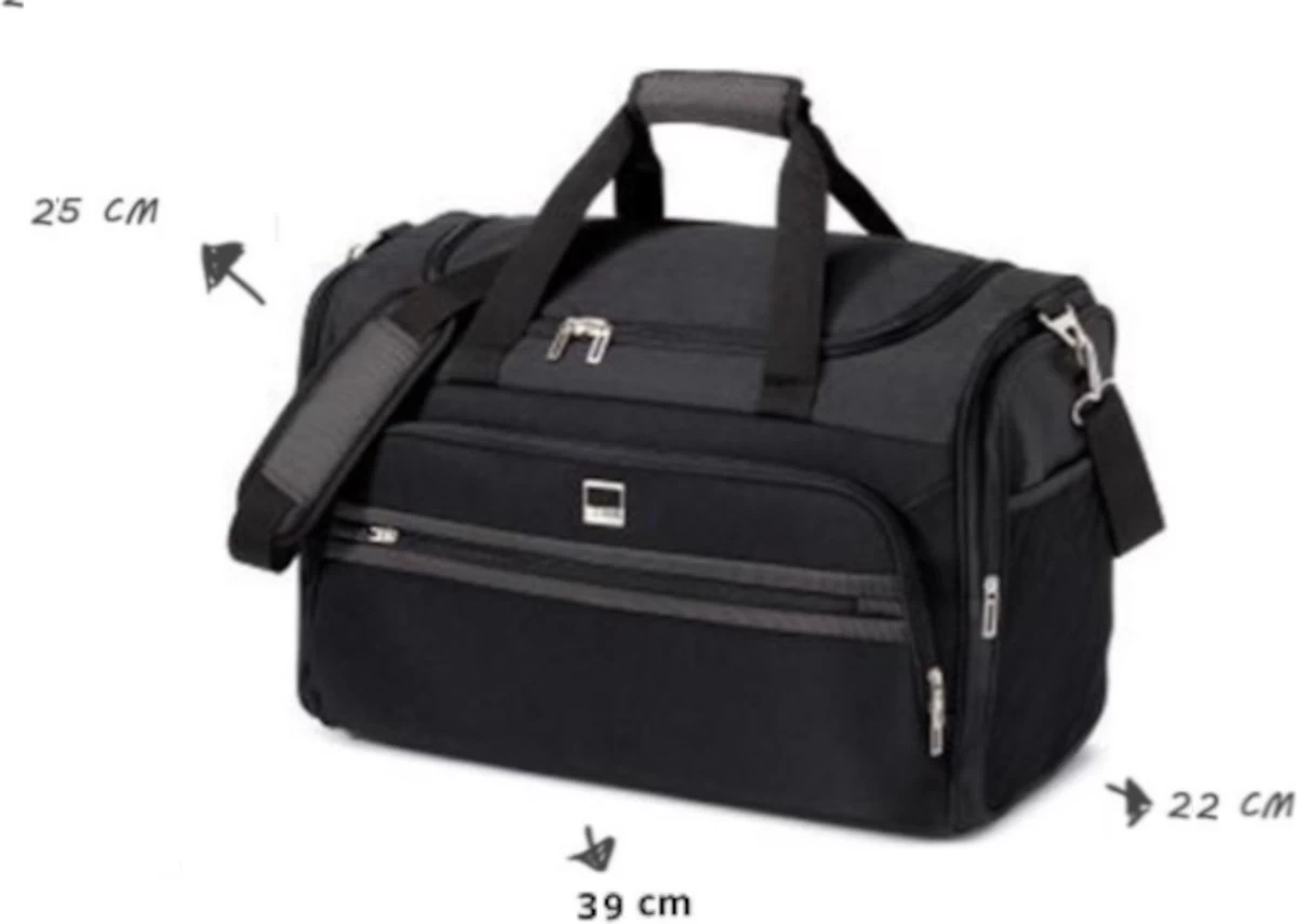Deze Handbagage Reistas is door zijn vele vakken (8 stuks) extra praktisch voor een ieder die goed georganiseerd op reis wil gaan. Behalve de 4 vakken in het hoofdvak, heeft de tas aan de buitenkant twee zijvakken. Ook heeft de tas aan de voorkant een groot én een klein ritsvak. Dit maakt de tas de meest populaire Handbagage Reistas voor luchtvaartmaatschappijen zoals Ryanair.