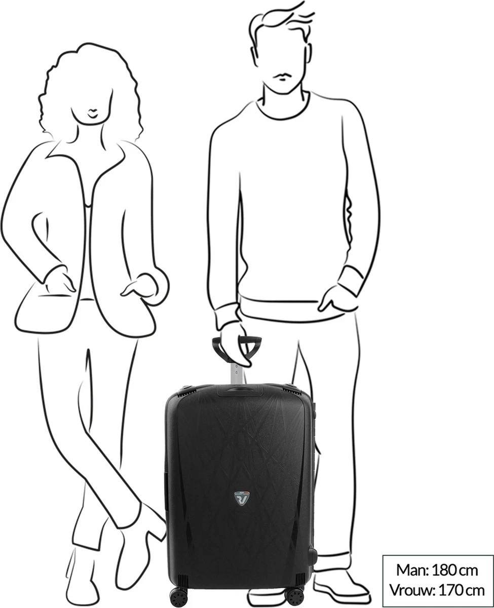 Middel maat spinner uit de Light collectie van Roncato. Roncato brengt met de Ligt collectie een sterke serie in het polypropyleen segment. De light serie kenmerkt zich door een sterke schaal welke zowel waterafstotend, schokbestendig als kleur behoudend is. De Light serie is gemaakt van 100% Europees polypropyleen en alle gebruikt onderdelen zijn 100% afbreekbaar en recyclebaar. Hiermee toont Roncato aan zich bewust te zijn van de ecologische uitdagingen die er zijn. Roncato produceert hun series volledig in eigen fabriek in Italië en voldoet mede daardoor aan een hoge standaard kwaliteit. De Light collectie brengt een sterke schaal koffer met een ruime inhoud. De koffer is voorzien van een TSA combinatieslot. In het interieur is gekozen voor maximale inhoud en is voorzien van inpakriemen en een tussenschot.