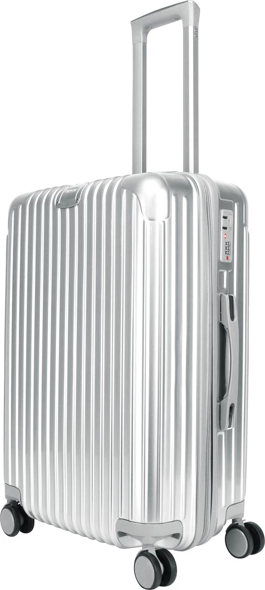 Deze betrouwbare koffer beschikt over al het nodigde voor u volgende vakantie. Een harde en veilige buitenkant, een aliminium trekstang, 3-cijferige slot, 4 dubbele flexibele wielen. De koffer is verkrijgbaar in 3 formaten. De middenmaat en grote maat zijn voorzien van stootrubbers, deze zorgen ervoor dat uw koffer tijdens transport zo min mogelijk beschadigd raakt. De stootrubbers bevinden zijn aan de lange zijde van de koffer. Zo beschikken de middenmaat en de grote maat ook voor een extra handvat. Deze zit onder het cijferslot. Doormiddel van deze extra handvat is het makkelijker om de zware koffer te verplaatsen of op te tillen in de auto, trein of bus. Binnen in de koffer is er een duidelijke en overzichtelijke verdeling. Aan de ene zijde een divider met 2 gekruiste spanbanden en aan de andere zijde een handige ritsvak. Dit maakt deze koffer van het merk Royal Swiss een betrouwbare reispartner met een fraaie design.