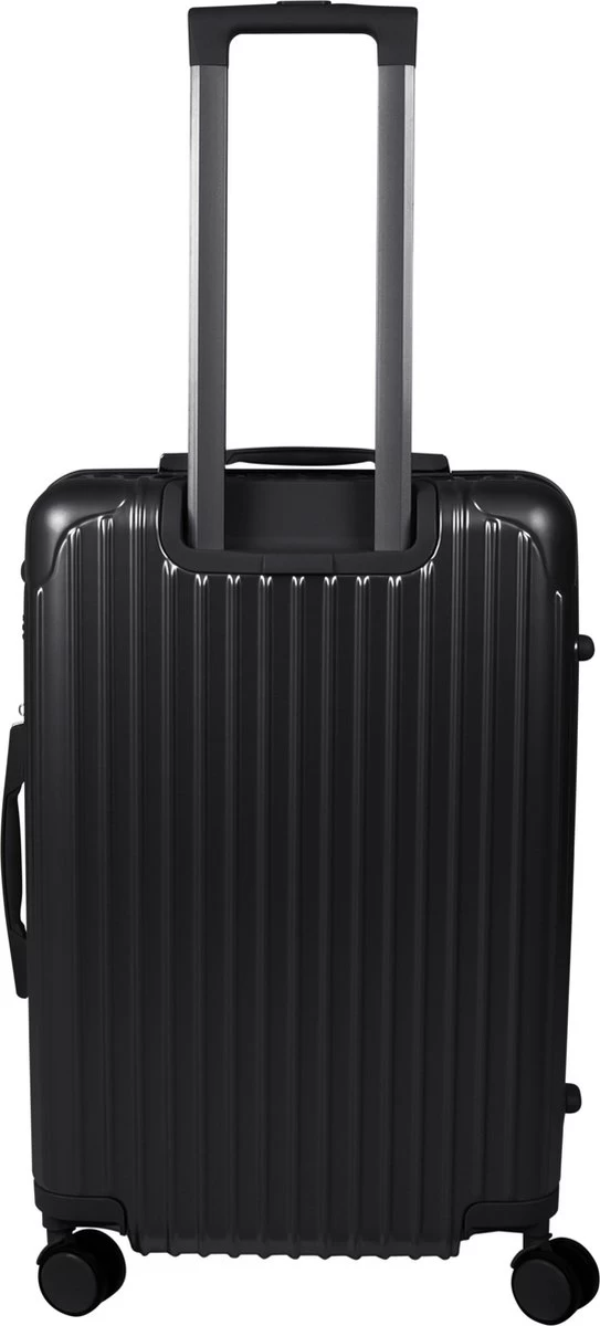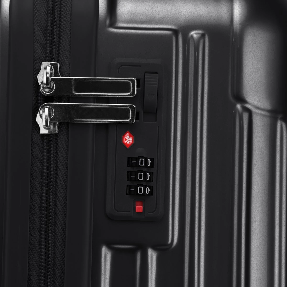 Deze betrouwbare koffer beschikt over al het nodigde voor u volgende vakantie. Een harde en veilige buitenkant, een aliminium trekstang, 3-cijferige slot, 4 dubbele flexibele wielen. De koffer is verkrijgbaar in 3 formaten. De middenmaat en grote maat zijn voorzien van stootrubbers, deze zorgen ervoor dat uw koffer tijdens transport zo min mogelijk beschadigd raakt. De stootrubbers bevinden zijn aan de lange zijde van de koffer. Zo beschikken de middenmaat en de grote maat ook voor een extra handvat. Deze zit onder het cijferslot. Doormiddel van deze extra handvat is het makkelijker om de zware koffer te verplaatsen of op te tillen in de auto, trein of bus. Binnen in de koffer is er een duidelijke en overzichtelijke verdeling. Aan de ene zijde een divider met 2 gekruiste spanbanden en aan de andere zijde een handige ritsvak. Dit maakt deze koffer van het merk Royal Swiss een betrouwbare reispartner met een fraaie design.