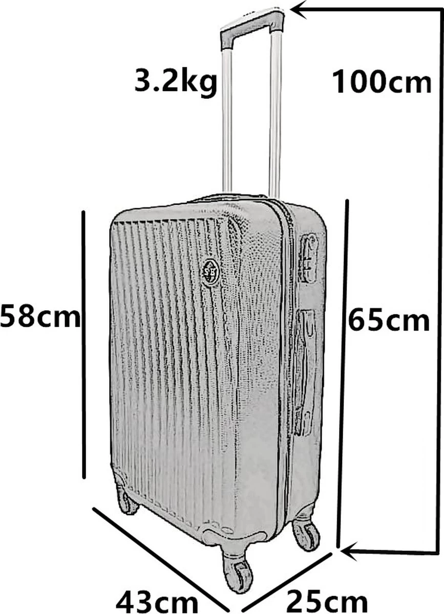 De 4 wiel trolley van SB Travelbags is een stijlvolle harde koffer met een speels patroon aan de voorzijde, ook is het lichtgewicht en verkrijgbaar in de kleuren zwart, roze, blauw, champagne, grijs en licht roze in de maten 55 cm, 65 cm en 75 cm.