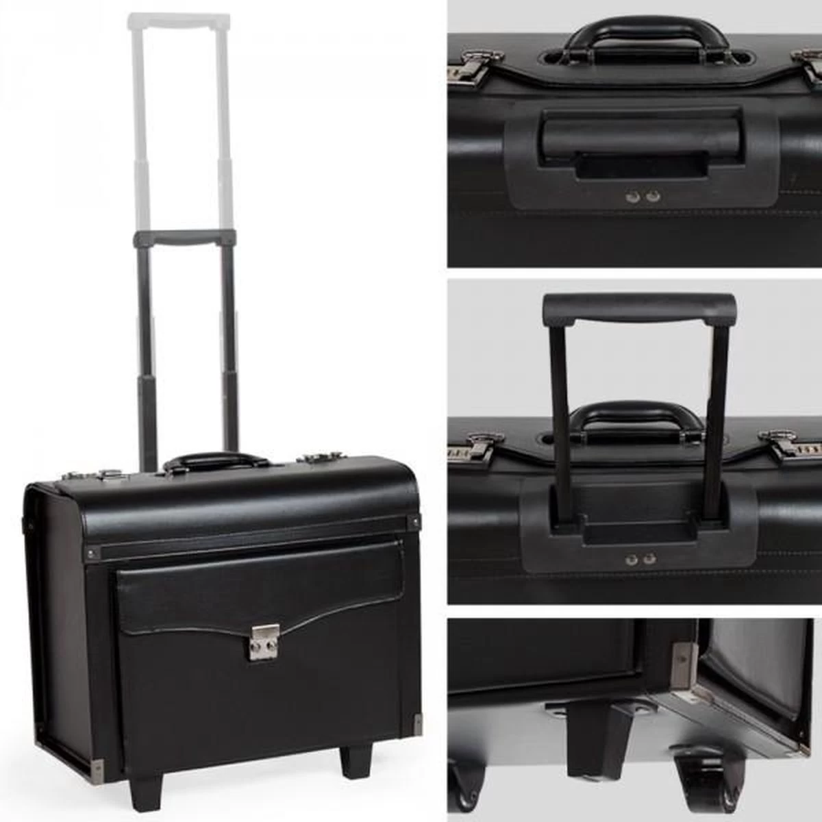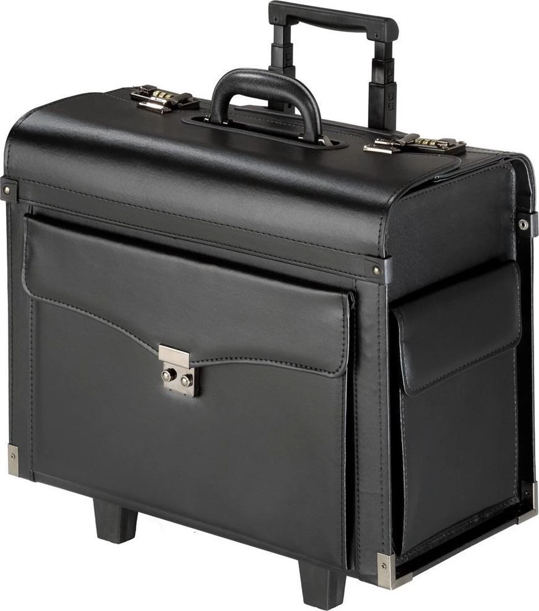 Uw documenten zijn uiterst veilig dankzij de twee cijfersloten. Dankzij het in 3 posities verstelbare telescoophandvat en de twee gemakkelijk rollende wieltjes kunt u de koffer comfortabel overal meenemen.