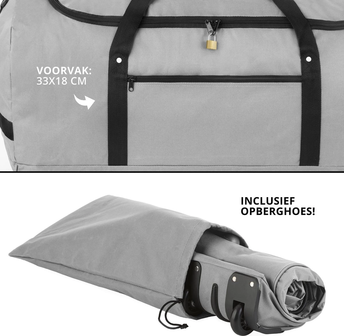 De TravelZ opvouwbare wieltas is een echte lichtgewicht op wielen. De tas is op 3 punten verstevigd eind 2022. Let op dat deze tas tot wel 30 of 35kg inhoud kan ontvangen, maar wij raden aan niet meer dan 15 kg á 20 kg te gebruiken. De tas is minder geschikt voor vliegreizen en heeft geen verharde bodem.