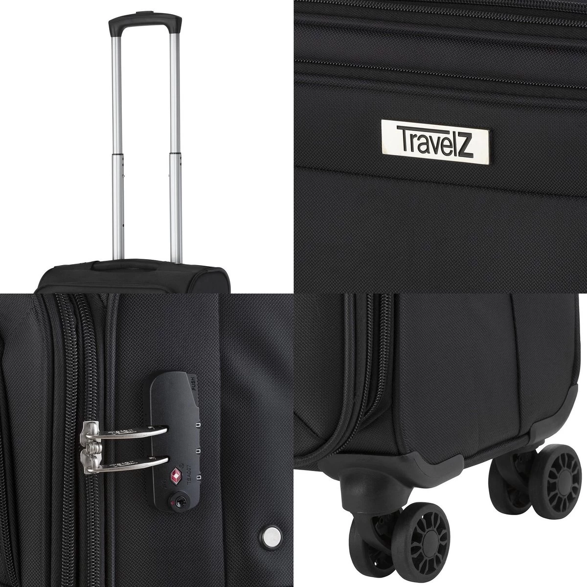 De TravelZ Softspinner is een veilige en lichtgewicht zachte reiskoffer die van alle gemakken voorzien is. De koffer heeft een internationaal erkend TSA-cijfercombinatieslot, is voorzien van 4 soepele dubbele wielen. De trekstang is in verschillende standen verstelbaar, waardoor dit geschikt is voor zowel lange als kleinere personen. Twee voorvakken op iedere koffer stellen je in staat om je reisdocumenten of een boekje gemakkelijk erbij te pakken, zonder de koffer te hoeven openen. Wil je meerdere koffers? Zoek even op de Softspinner kofferset en pak je prijsvoordeel!